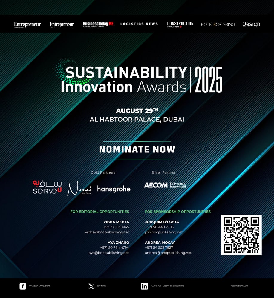 On August 29, 2025, the Sustainability Innovation Awards will shine a spotlight on the region’s most visionary designers, architects, and studios whose work is reshaping the future of sustainable design in the Middle East at Al Habtoor Palace, Dubai.