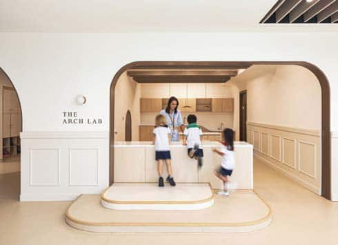 That Define Excellence In 2019, Charlotte Borghesi delivered her first full school project valued at over 6 million AED, proving that outsiders could successfully redefine education design. She then transformed the business model by establishing a 20,000sqm vertically integrated manufacturing facility—the region’s most advanced furniture operation— featuring prototyping labs and 3D printing. This shift eliminated reliance on slow, inflexible third- party suppliers and positioned the company at the forefront of innovation. Most transformative has been the Beyond the Box research, a 40-year literature review of 850+ projects, culminating in the Enriched Environment Model, which translates neuroscience into measurable design principles.