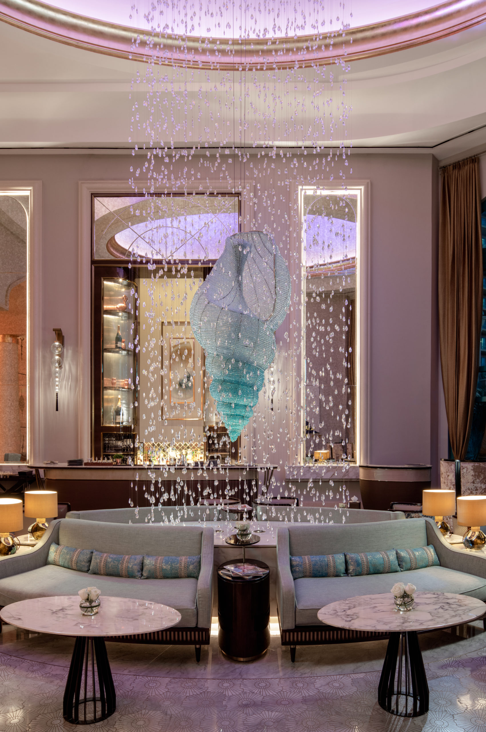 The spiralling shell located in Plato’s Coffee & Tea Lounge is unmissable. Inspired from the sea, the installation  is designed by Preciosa designer Petr Kořínek in collaboration with HBA Dubai.