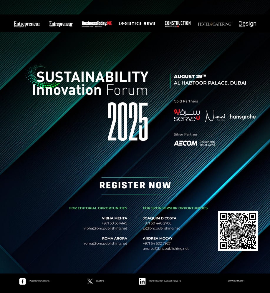 The Sustainability Innovation Forum 2025 brings together forward-thinking leaders from construction, entrepreneurship, hospitality, and design—all united by a common vision: creating a sustainable, greener future. The event is taking place on August 29, 2025 at Al Habtoor Palace, Dubai. This vibrant forum is designed to ignite creativity and foster bold ideas, featuring groundbreaking discussions and innovative strategies that tackle today’s most pressing sustainability challenges.