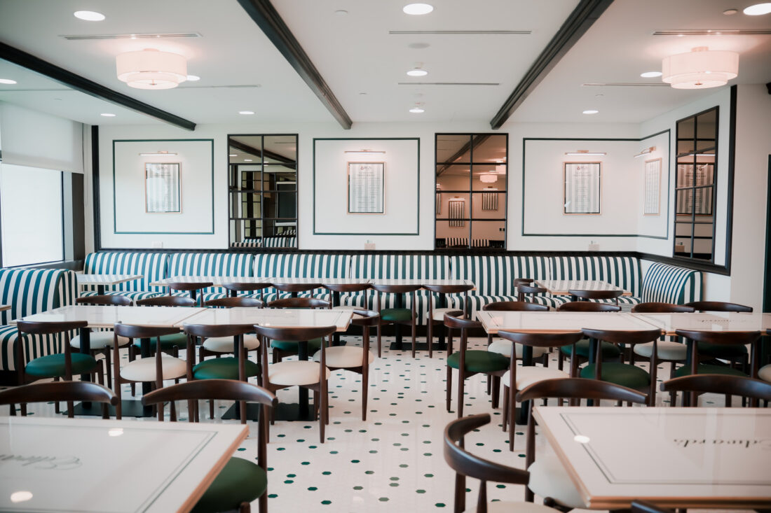 Named after King Edward VI, Teddy’s serves as a vibrant dining hall for senior school pupils. More than a lunch space, it is design as a place to connect, converse, and recharge. Designed with inspiration from classic Ralph Lauren cafés, the space accommodates up to 90 students and features mosaic flooring with custom tiles, bespoke tables, and elegant, brown-tinted mirrors.