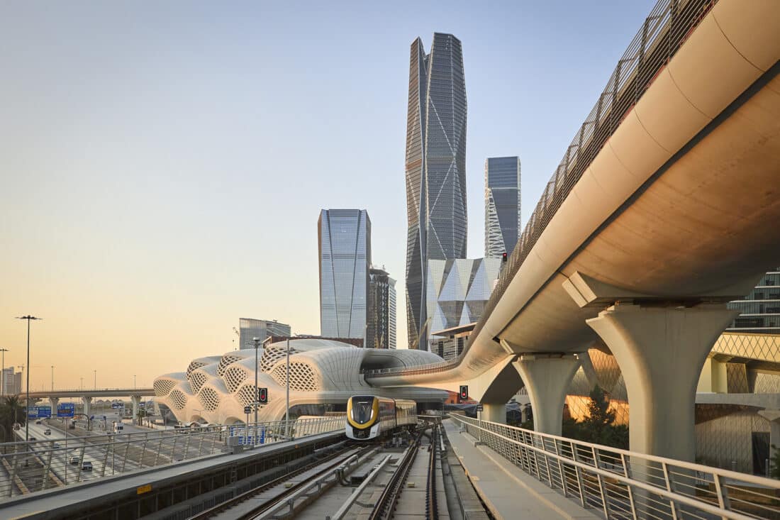 Riyadh Metro, the world’s longest driverless transit system, designed by Zaha Hadid Architects covers 85 stations